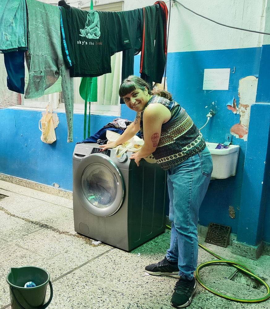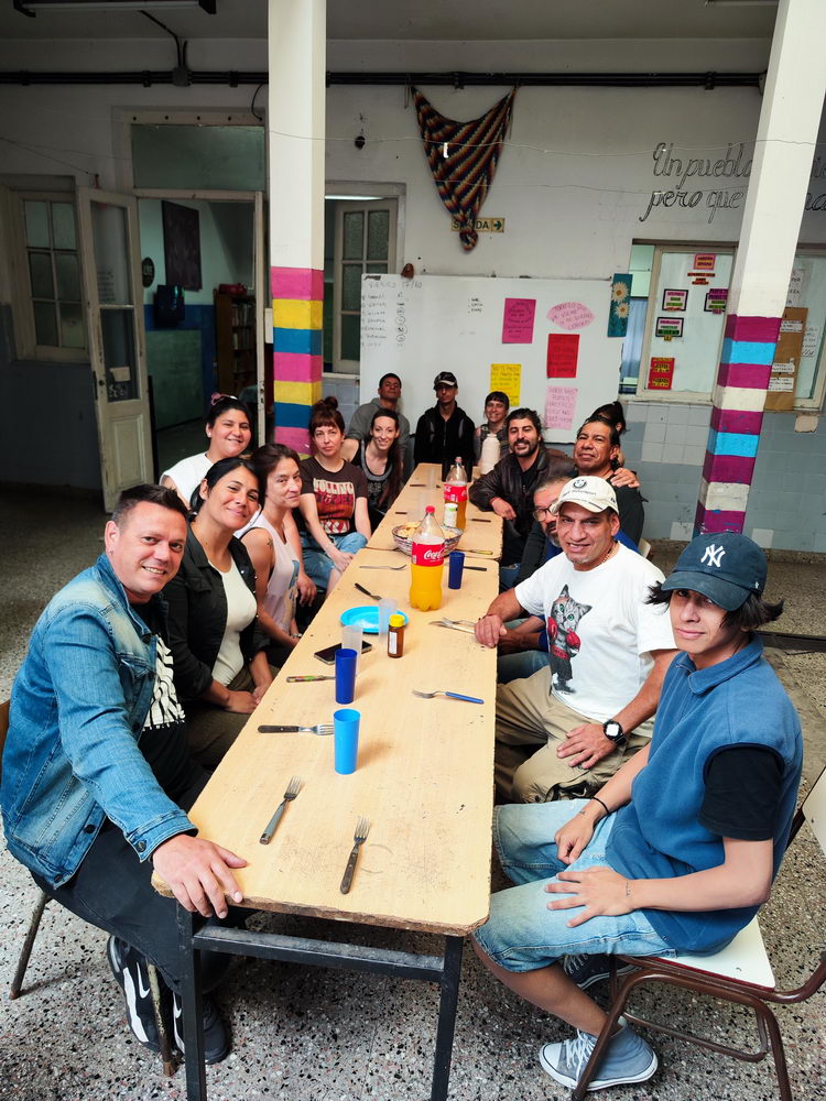 Carla: Acompañamos a personas en situación de calle y consumos problemáticos. En realidad, cualquier persona que necesite algo va a tocar la puerta y nosotros lo vamos a recibir, vamos a escuchar qué es lo que está pasando y a orientar. Si está atravesando un consumo problemático, llegó al lugar indicado. Acá, de lunes a jueves hacemos proceso, hay actividades, psicólogos, todo muy encuadrado. Y los días viernes es abierto a la comunidad. Tomamos ese día para que aquellas personas que por ahí nunca se han animado a hacer un proceso por consumos o les da vergüenza ir a algún lugar, puedan acercarse por algunas otras necesidades. Por ahí un almuerzo, una ducha, usar el lavadero comunitario… así nos van conociendo, y podemos, a veces, problematizar ciertas cuestiones de la vida que parece que las tenemos controladas y no es así. Así que nuestra pata es el consumo problemático.
