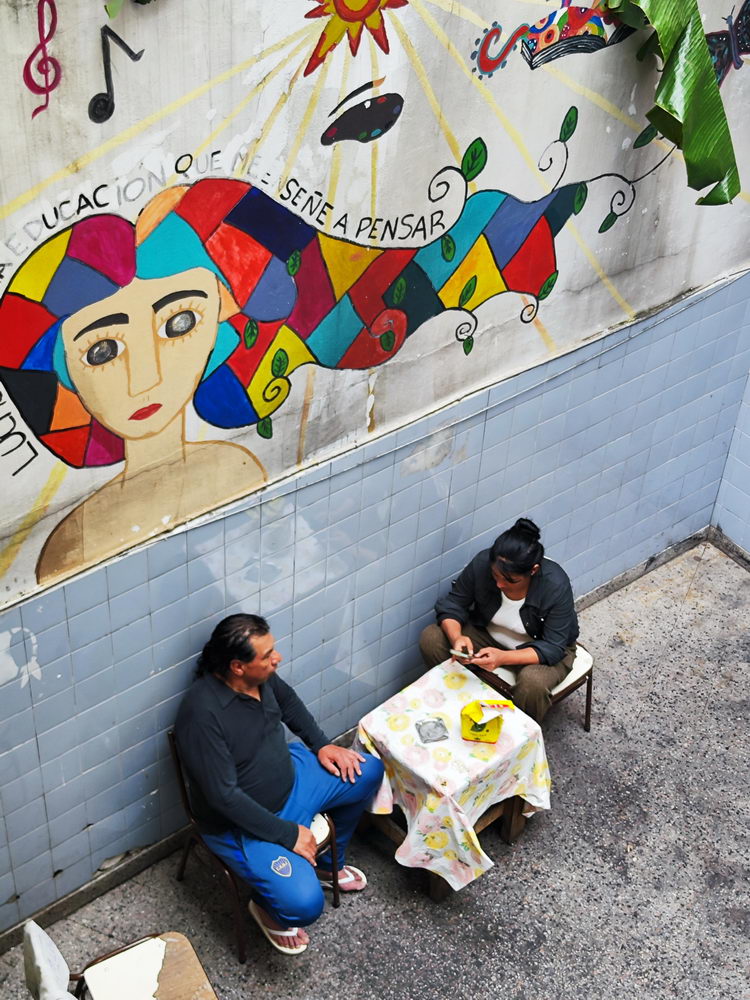 Carla: Cuando habían salido con que las personas en situación de calle se vayan de la capital, viene un concurrente y me pregunta como ¿Quién me va a dar el pasaje? ¿A dónde me van a mandar?…Tenías los vecinos y vecina, con que “tengo la vereda sucia” y la persona con la preocupación de que era a él a quien lo iban a mandar de un lado a otro y no sabía dónde. Claro, es una persona, existe. Tiene su alma, su corazón.
